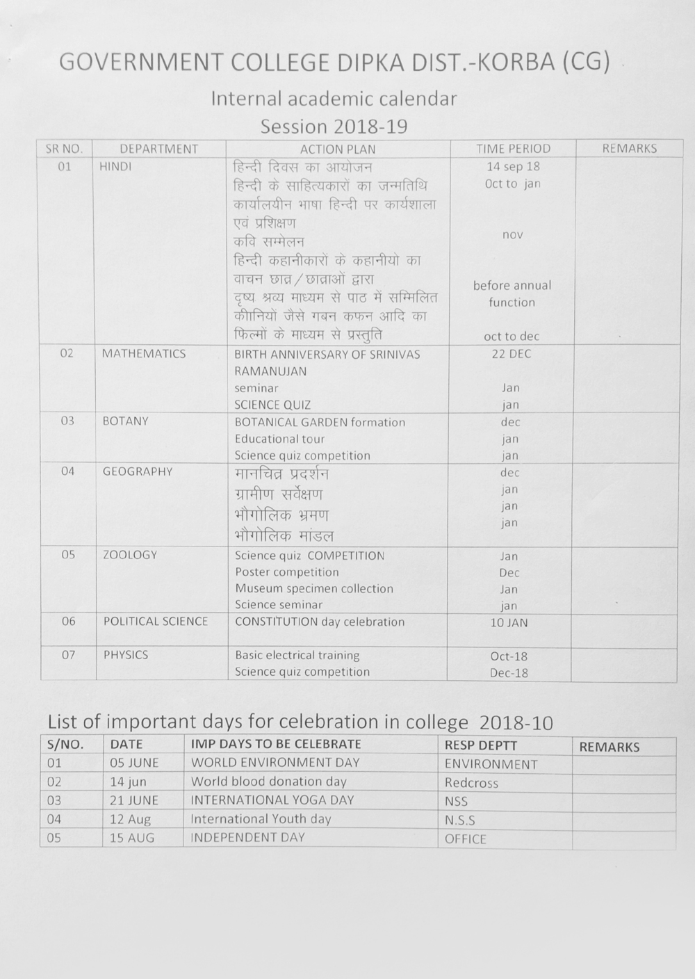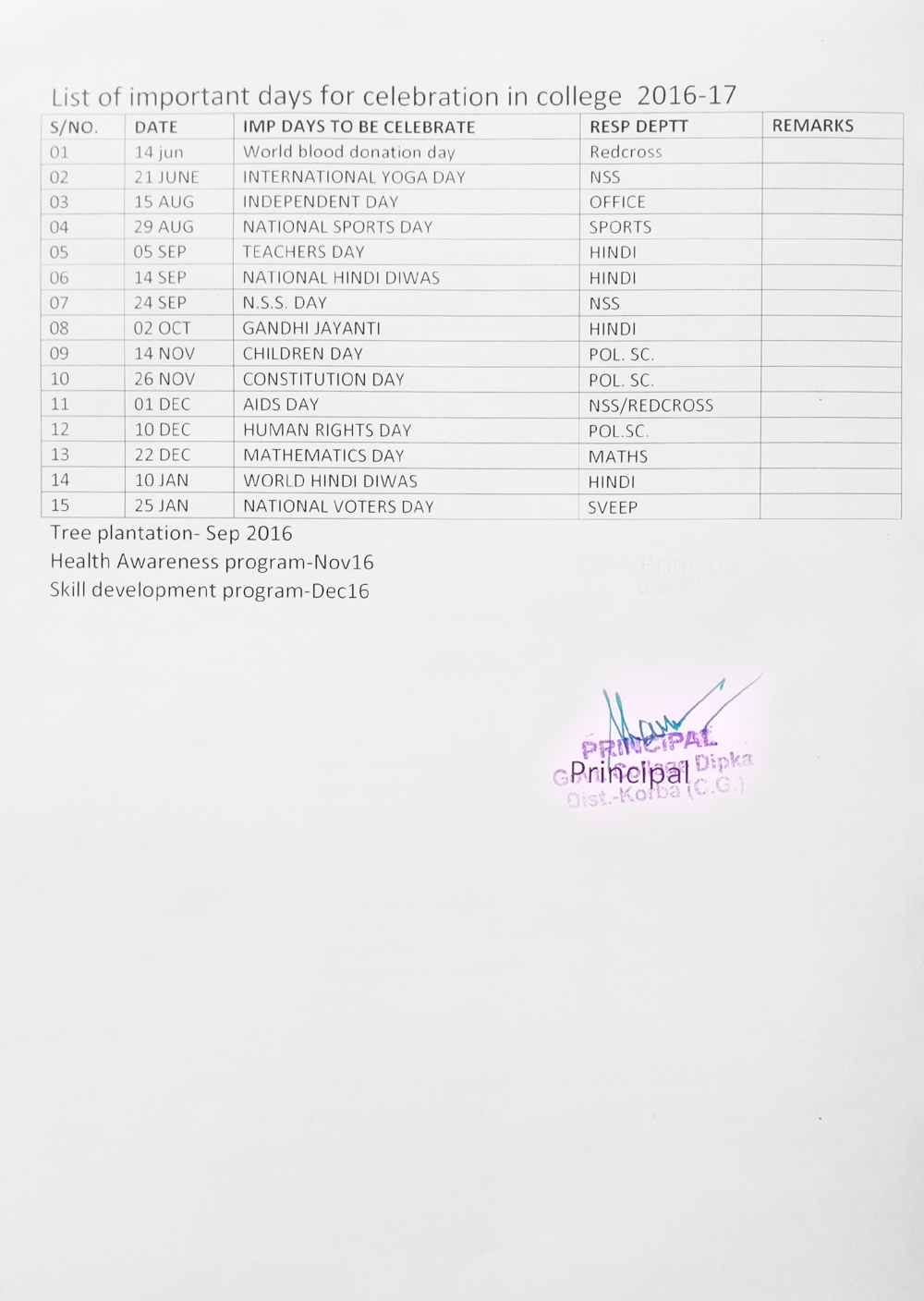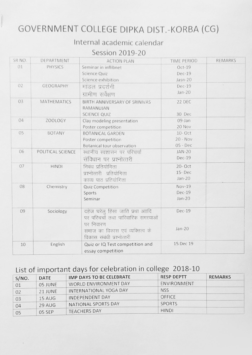 Student union play important roll to achieve vision of college. student union is being formed in month of august according to instruction of cg govt and university academic calendar. Some programme like aids rally, tree plantation, cultural activities, sports, health awareness, cleanliness are held every year by student union. List of student union in college is given bellow-