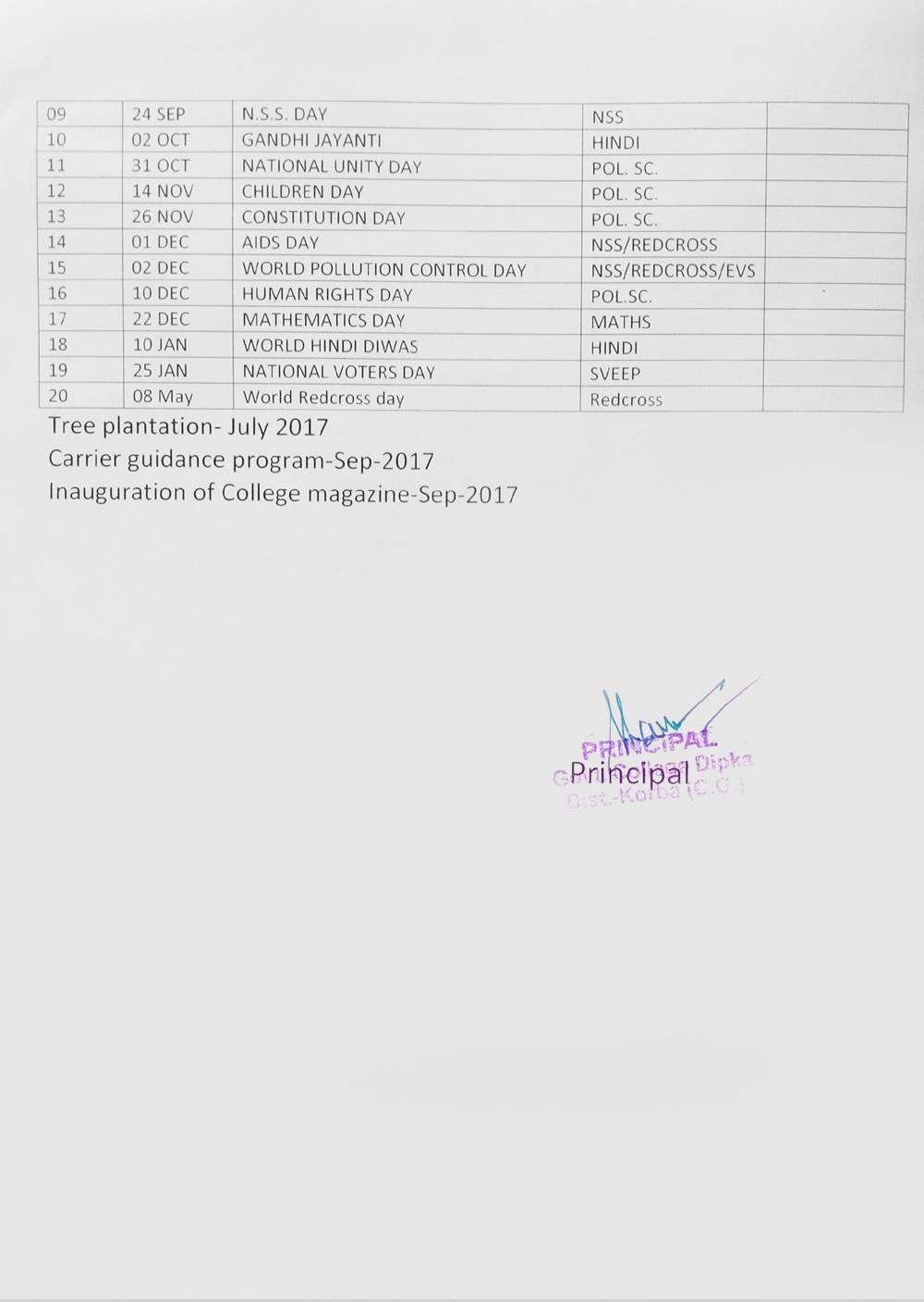 | 2016-17 | RAJNISH MARAVI B.A. - II |